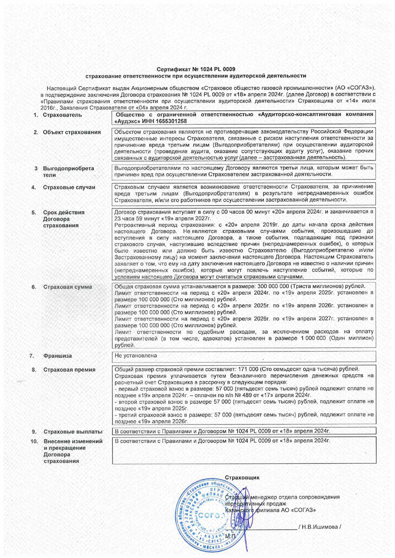 Следование этим принципам позволяет «Аудэкс» занимать лидирующие позиции в бизнесе и является основой для выполнения миссии.