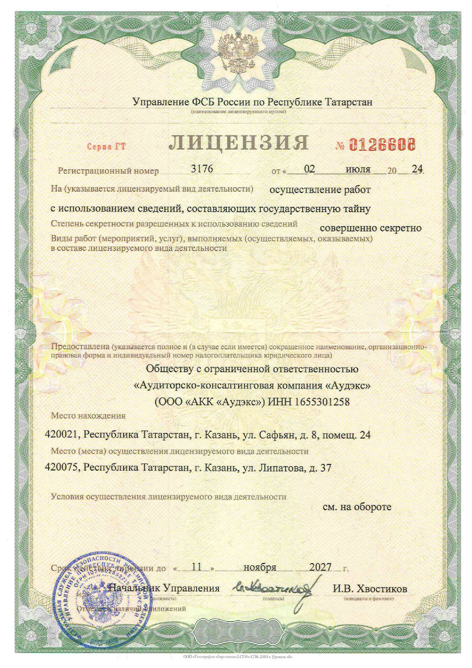В соответствии с действующим законодательством, "Аудэкс" имеет лицензии на лицензируемые виды деятельности. Действие большей части этих лицензий неоднократно возобновлялось, что свидетельствует о том, что деятельность компании уже на протяжении более 30 лет не вызывает нареканий со стороны контролирующих и лицензирующих органов.