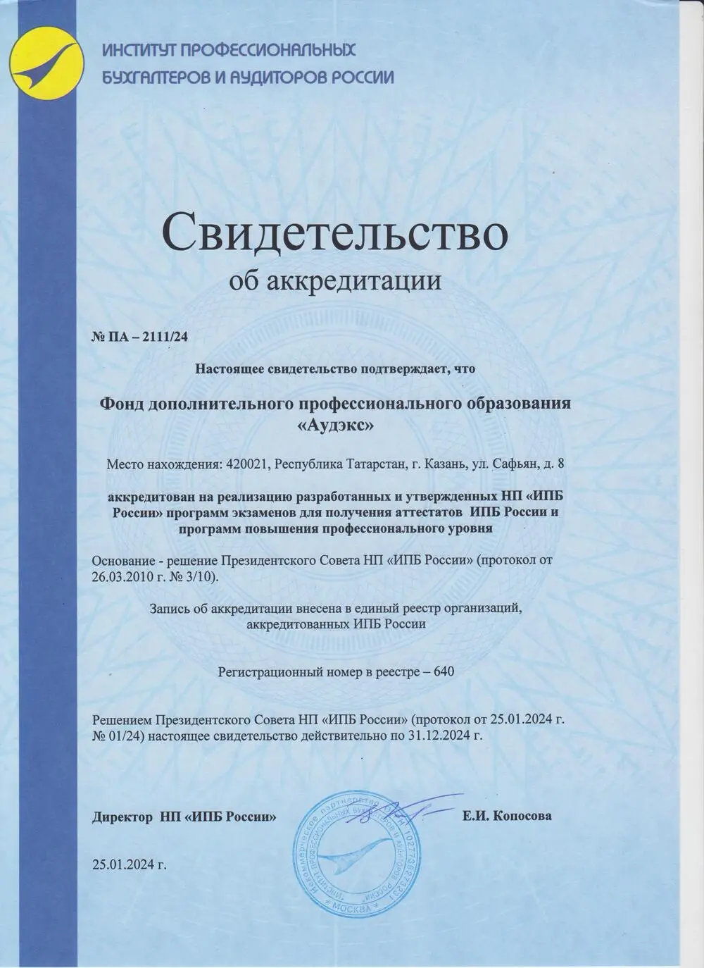 С 1 января 2008 года, в соответствии с Законом об оценочной деятельности №135 ФЗ, в России отменено лицензирование оценочной деятельности. "Аудэкс" является членом некоммерческого партнерства "Союз Республики Татарстан", а ее сотрудники - членами СРО "Российское общество оценщиков", СРО "Экспертный совет", СРО "Федерация специалистов оценщиков".