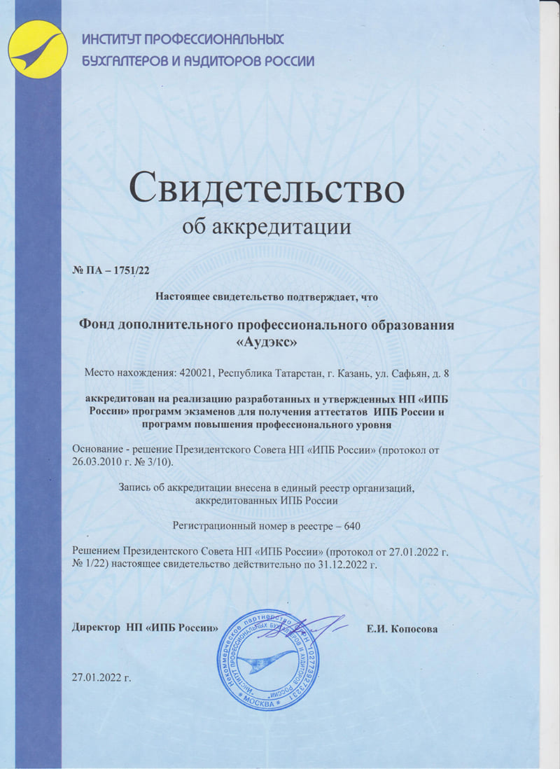 Повышение уровня знаний для бухгалтеров, имеющих аттестат профбухгалтера (40 час.) |